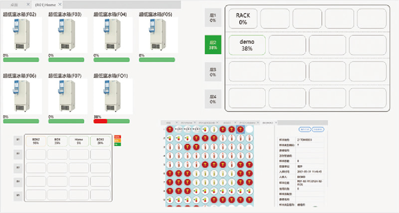 ·系統(tǒng)能直觀的展示菌庫中的存儲容器設備,按照冰箱一凍存架-凍存盒-凍存管,存儲結構進行圖形化界面展示