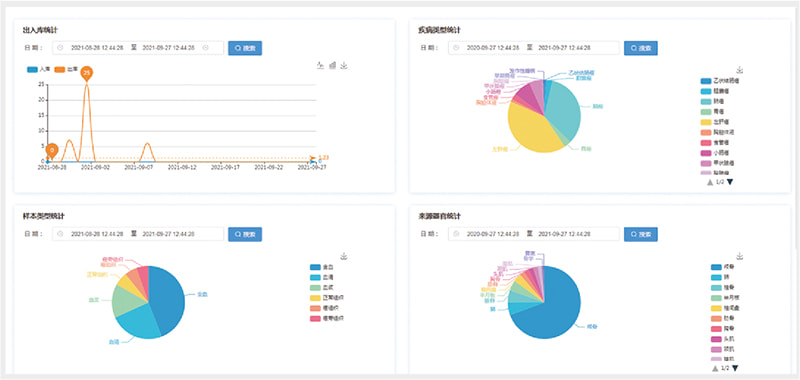 ·系統(tǒng)支持用戶按照年度、季度、月度進行在庫量的相關統(tǒng)計,可依據(jù)所存樣本的相關信息例如類型、名稱等字段進行自定義統(tǒng)計,透視對應圖標展示。